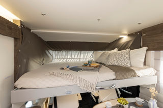 Every inch and design feature of the Roller Team Pegaso 745 exudes an extravagant A-Class ambiance. From the sleek drop-down bed and elegantly curved lockers to the updated upholstery scheme, you'll feel as if you're traveling in luxury in the Pegaso 745. Moreover, the interior space of this motorhome is exceptional. The rear U-shaped lounge invites you to sink in and unwind after a day's journey or exploration, while the front dinette is perfect for both romantic dinners and family meals. With its modern design elements and high specifications, finding a more fitting A-Class motorhome would be a challenge.